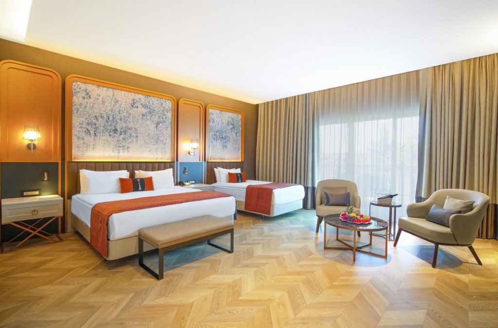 В стаите:  Стаите са оборудвани с вана или душ, сешоар, чехли и халати, климатик, телевизор, безплатен Wi-Fi, сейф и минибар, който се зарежда ежедневно. Стаята разполага и с удобства за приготвяне на чай и кафе. Ежедневното почистване включва смяна на кърпи, а спалното бельо се сменя три пъти седмично. Ютия и дъска за гладене се предоставят при поискване, а рум-сървис се предлага срещу заплащане.