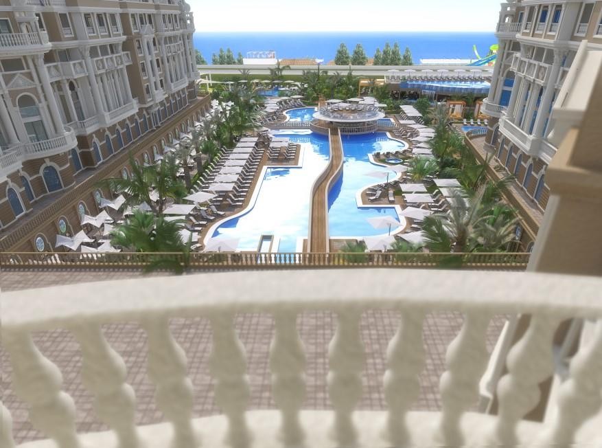 На територията: външен басейн, вътршен басейн, аквапарк, инфинити басейн, детски клуб, основен бюфет ресторант, 4 а-ла-карт ресторанта, 6 бара, 1 ресторант на плажа, сладкарница, СПА център, турска баня, фитнес център, аеробика, тенис на маса, йога, пилатес, зумба, дартс, наем на велосипеди, съоръжения за водни спортове, плажен волейбол, аниматори, нощен клуб, караоке, интернет, конферерна зала.