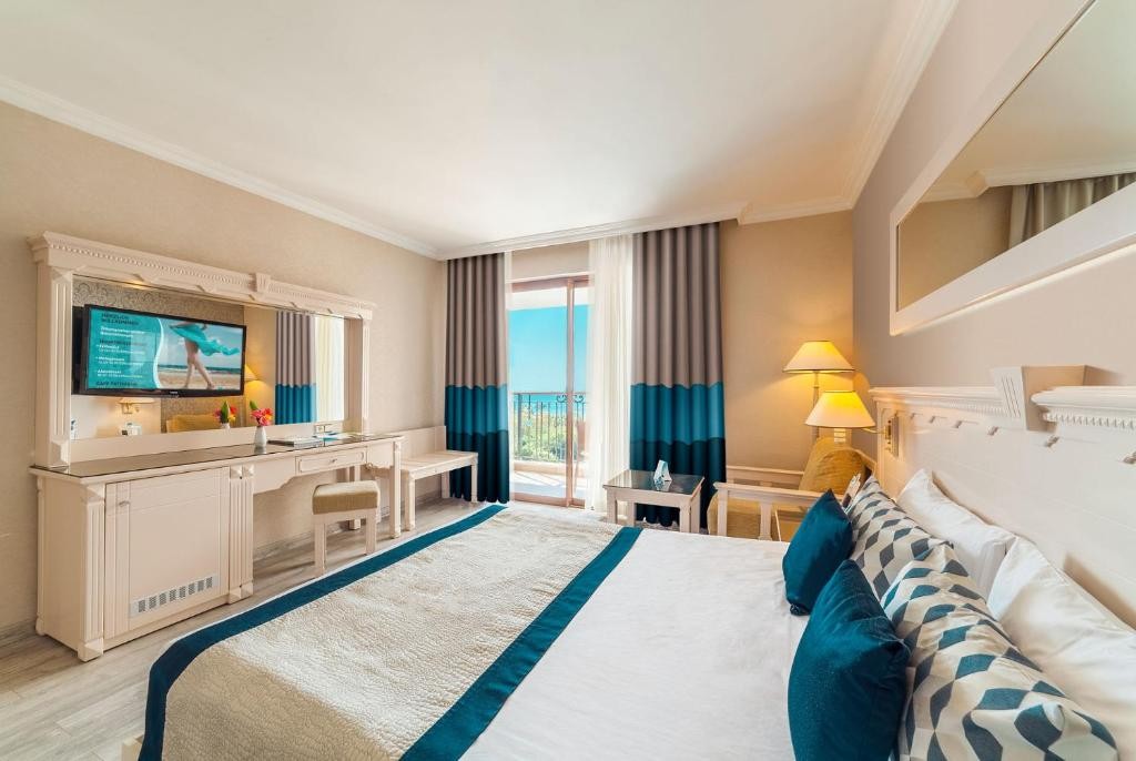 В стаите: HOTEL TURAN PRINCE 5* се състои от основна хотелска част (състояща се от 4 блока) и 28 двуетажни вилни корпуси - Park Villa, разположени от другата страна на основните сгради и има път между главните сгради и сградите на Park Villa. През 2014-2015 г. е извършена обща архитектурна реновация и е модернизирано обзавеждането в стаите, а през 2019 г. са обновени баните във всички стаи в хотелската част. Хотелът разполага с общо 458 стаи, които са оборудвани с климатик (централен в основните сгради и индивидуален във вилната част), плоскоекранен телевизор със сателитен приемник, телефон с директно избиране, баня с душ, сешоар, сет за приготвяне на кафе и чай, минибар, сейф, безплатен достъп до Wi-Fi (безжичен интернет), под- ламиниран паркет, ежедневно презареждане на минибара с вода и безалкохолни напитки.