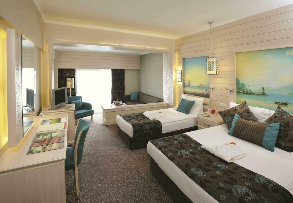 На територията на хотела: Основен ресторант (има диетично меню), 4 ресторанти a la carte (османски, италиански, азиатски, барбекю - с предварително записване; за целия престой се полага едно посещение на избран ресторант - безплатно), 3 бара, дискотека, 2 открити и 1 закрит басейн, 5 пързалки за деца, Спа център, магазини, химическо чистене, фризьорски салон, 13 конферентни зали.