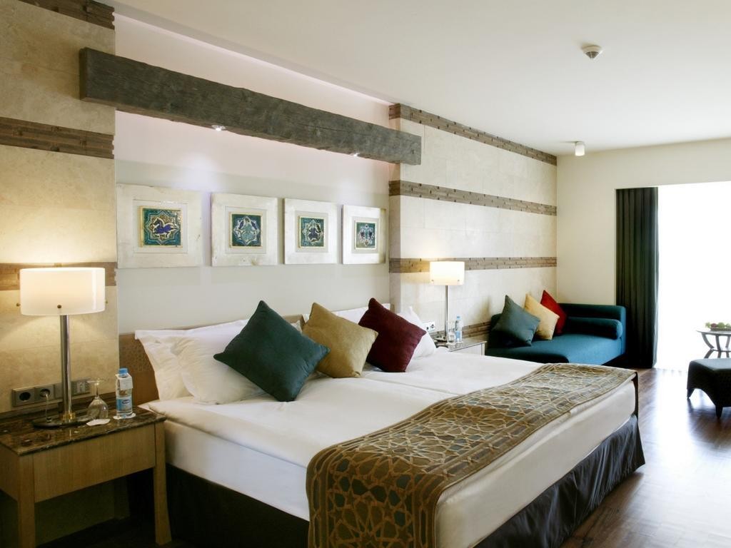 На територията на хотела: Основен ресторант,4 ресторанта a la carte (азиатски, италиански, турски, грил-рибен – платено),4 бара,открит басейн,закрит басейн, лекарски кабинет,фризьорски салон,магазини,пералня,химическо чистене,бизнес център,Таласо & SPA център.