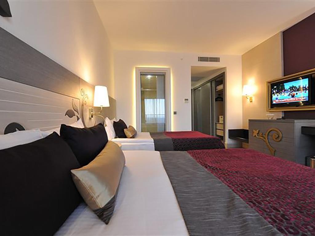 Хотелът разполага с общо 480 стаи, разположени в една основна сграда, от които Standard room land view (с изглед градина – 29 м2), Standard room side sea view (страничен и изглед море – 29 м2), Standard room sea view (изглед море – 29 м2), Family room (2 спални, 1 баня – 39 м2), Disabled room (стая за инвалиди - 29 м2). Всички стаи са оборудвани с климатик, телевизор, телефон, баня с душ, сешоар, сет за чай/кафе, минибар (безплатен), сейф (безплатен). Почистване на стаите и смяна на кърпите – всеки ден, смяна на спалното бельо – 2 пъти в седмицата.