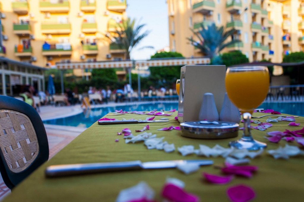 Разположение: Хотелът се намира на 118 км. от летище Анталия, на 50 м. от морския бряг, на 1 км. от центъра на гр.Алания. Построен през 2003г., реновиран е през 2011 г. Хотелът разполага общо с 188 стаи, от които 135 стандартни стаи и 53 фамилни стаи.