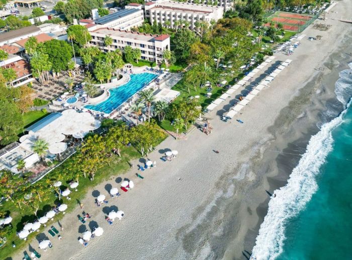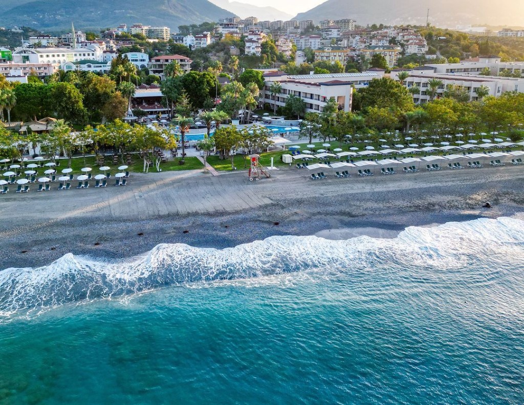 Разположение: Хотелът е разположен директно на частен плаж в естествена ботаническа градина с приятен средиземноморски климат. Намира се в селището Кестел, на 6 км от Алания и на 140 км от междунардоното летище в Анталия.