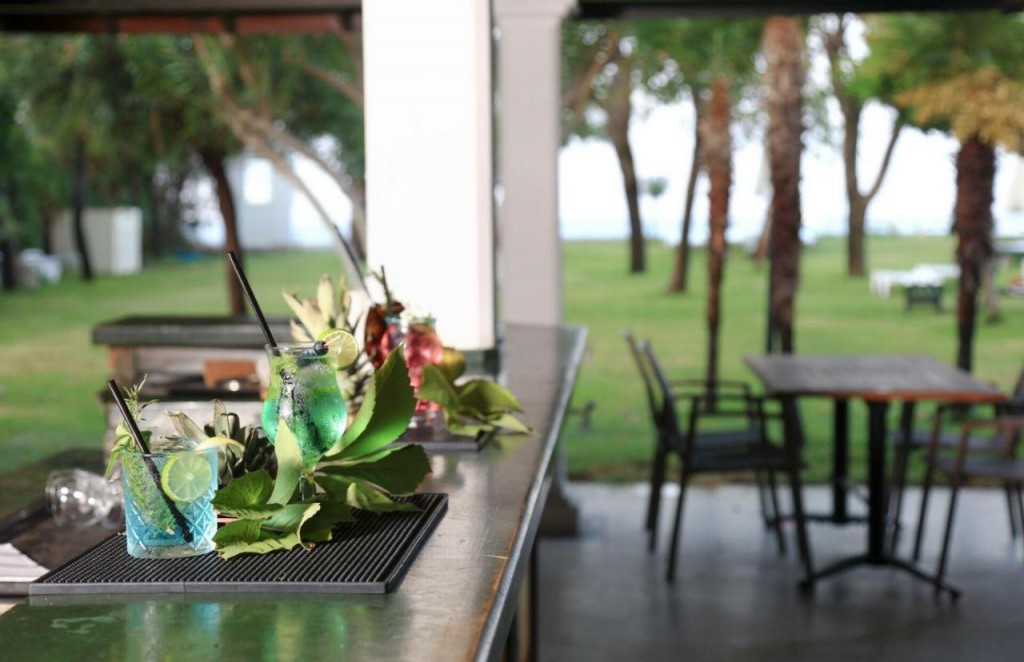 Плаж: Собствен, пясъчно- чакълест с дължина 450 м, с безплатни чадъри и шезлонги на плажа и при басейна, бар на плажа – Poseidon.