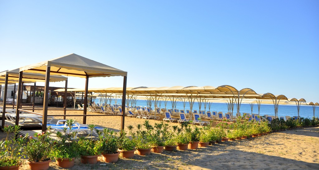 Плаж: Собствен пясъчно-чакълест плаж на 1300 м от хотела с осигурен шатъл. Чадъри, шезлонги, матраци и плажни кърпи се предоставят безплатно, на разположение на гостите има и бар на плажа.