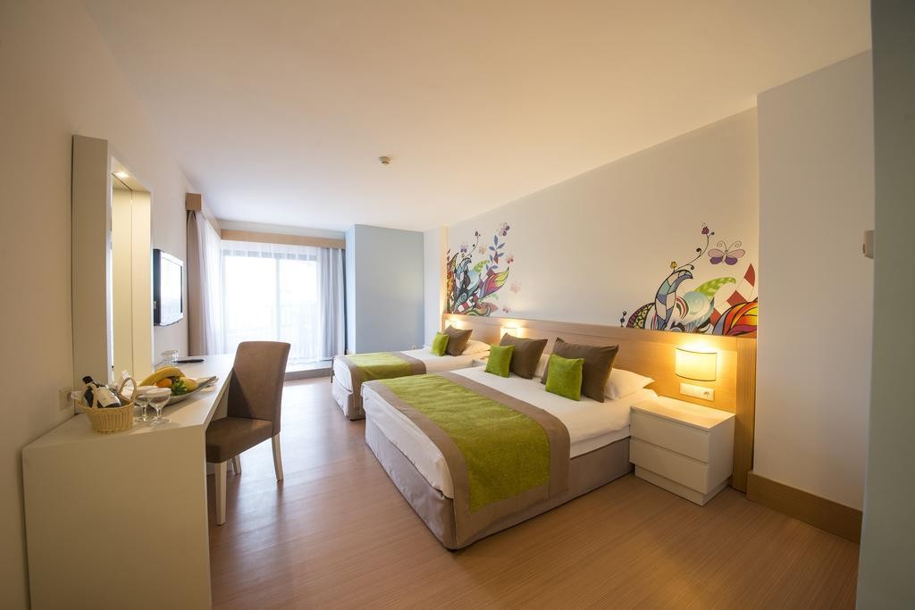 Стаи Main Building: 198 Standard room (25 м2), 12 Family room (1 спалня, 1 всекидневна, 1 баня – 40 м2), 3 Grand Suite with Jacuzzi (1 спалня, 1 всекидневна, 1 баня с джакузи – 45 м2).