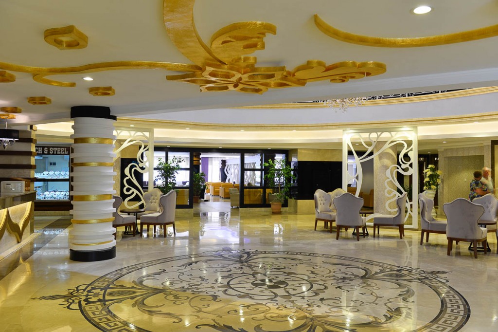 На територията на хотела: На територията на хотела: Хотелът разполага с основен ресторант, снек бар-градина, 5 бара, рибен а-ла-карт ресторант (предварителна резервация, едно безплатно посещение седмично), сладкарница, 2 външни басейна, 1 вътрешен басейн, СПА център, фитнес, игрална зала, магазини, анимация, дискотека (питиетата се заплащат), 3 конферентни зали, докторски кабинет, рент-а-кар, футболно игрище, тенис корт.