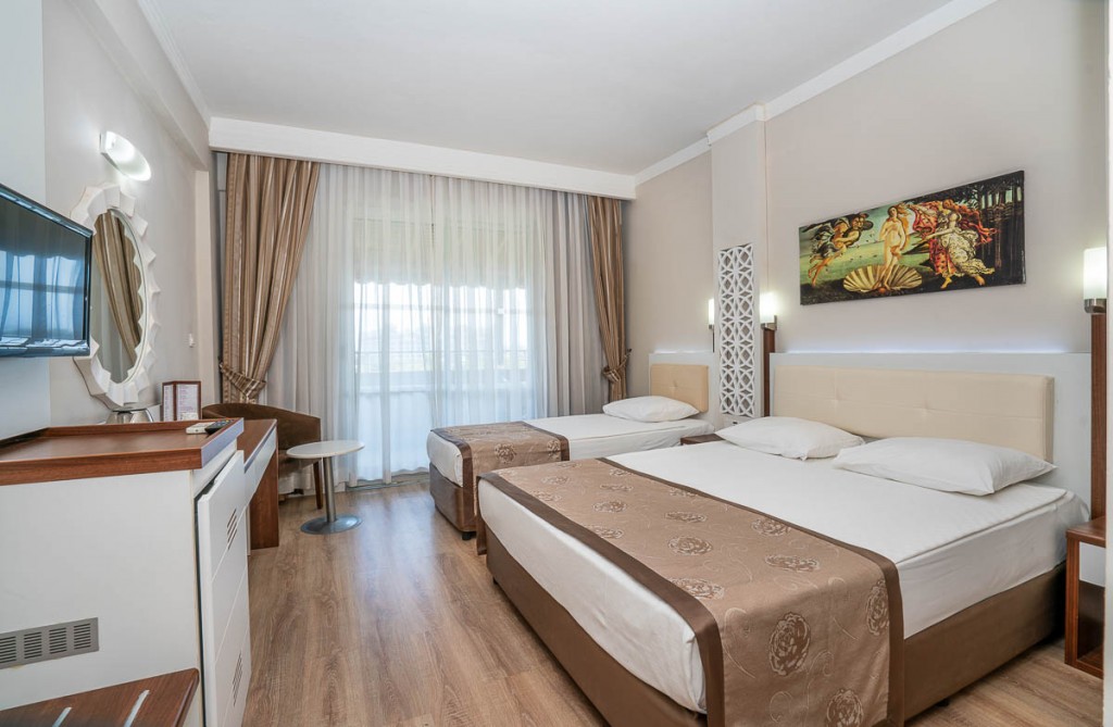 В стаите: Хотелът разполага с 239 стаи, разпределени в стандартни, стандартни с двуетажни легла, суит и фамилни стаи. Всяка една е оборудвана с балкон, климатик, сателитна телевизия, телефон, баня с душ, сешоар, сейф, мини бар (платен), WI-FI.