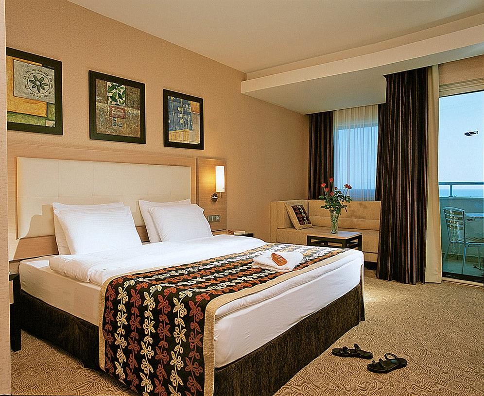 Стаите: Хотелът разполага общо с 748 стаи. Всички стаи са оборудвани с: климатик, сателитна телевизия, телефон, баня с душ или вана, сешоар, мини бар (безплатно), сейф (безплатно), балкон. Почистване на стаите - всеки ден, смяна на бельото и кърпите - 3 пъти в седмицата.