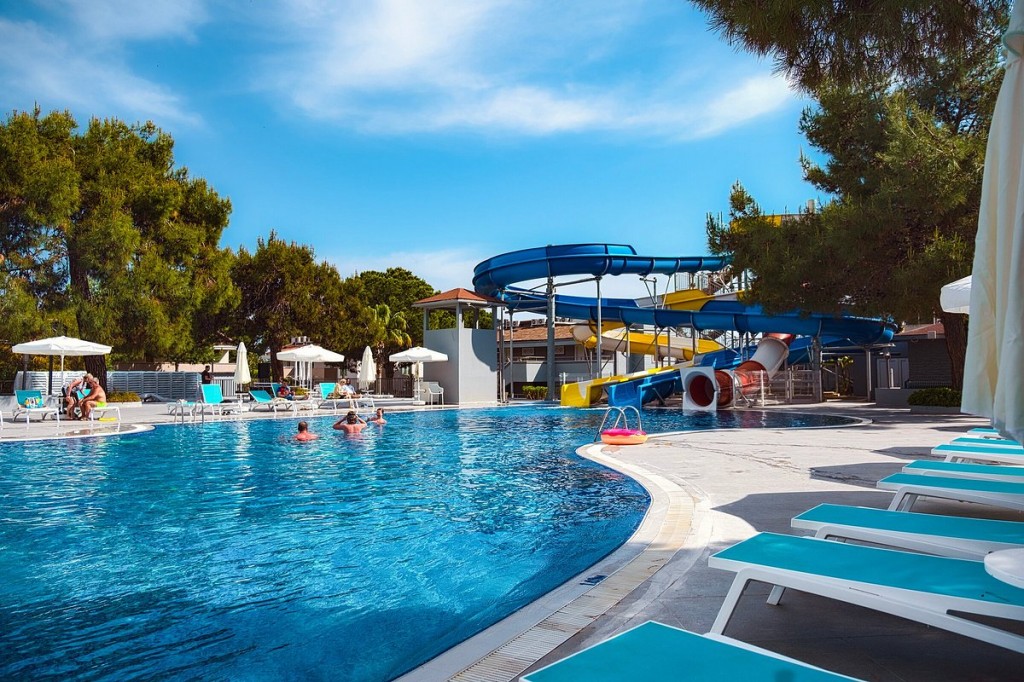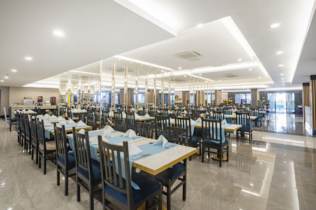 На територията на хотела: Основен ресторант, а - ла - карт ресторант, 4 бара, открит и закрит басейн, водни пързалки, фитнес център, WiFi- безплатен на рецепция, ресторант и на плажа.