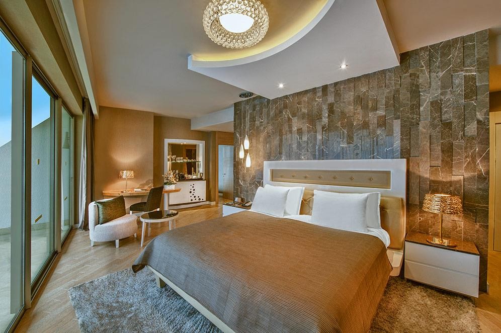 В стаите: Хотелът разполага с 505 суита в основна сграда и Terrace Houses, както и 26 частни вили. Стилните суити са обзаведени в успокояващи цветове и предоставят много пространство. Всички помещения за настаняване са оборудвани с: джакузи и душ, сешоар, халат, чехли, централен климатик, телевизор, телефон, мини бар (разхладителни напитки, бира, чипс, ядки, шоколад – зарежда се ежедневно, безплатно), сейф (в стаите, безплатно), балкон. Почистване на стаите – ежедневно, смяна са спалното бельо – ежедневно, смяна на хавлиите – ежедневно, интернет ( безжичен или стационарен - безплатно).