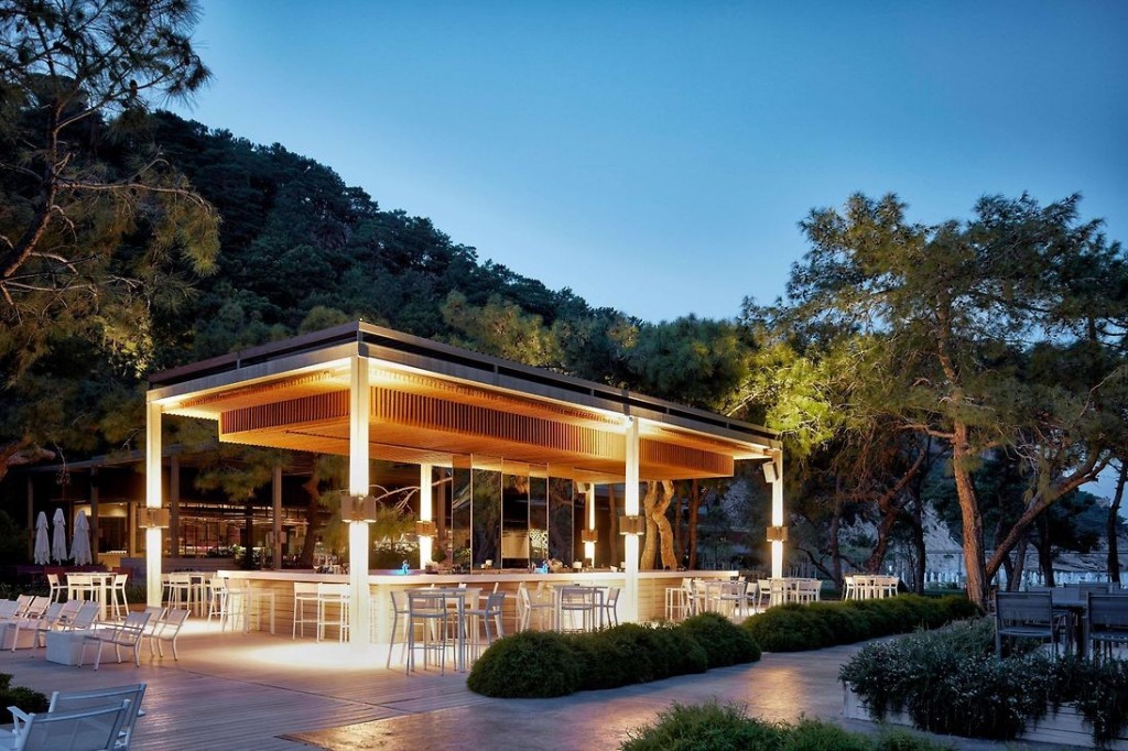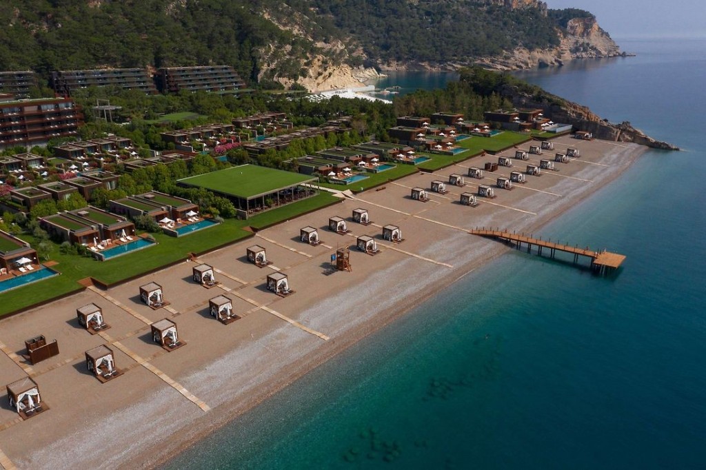 Плаж: На територията на хотела (100 м от основната сграда) се намира частен плаж с малки камъчета. Два частни 200-метрови залива, 400-метров частен плаж, 30-метров плаж за деца. Шезлонги, чадъри, матраци, плажни кърпи са безплатни. Входът към морето е малко камъче. Кабини за преобличане, душ, спасител на плажа, бар. Частните павилиони са платени. Обслужване на хладни кърпи и бърсане на слънчеви очила на плажа (безплатно).