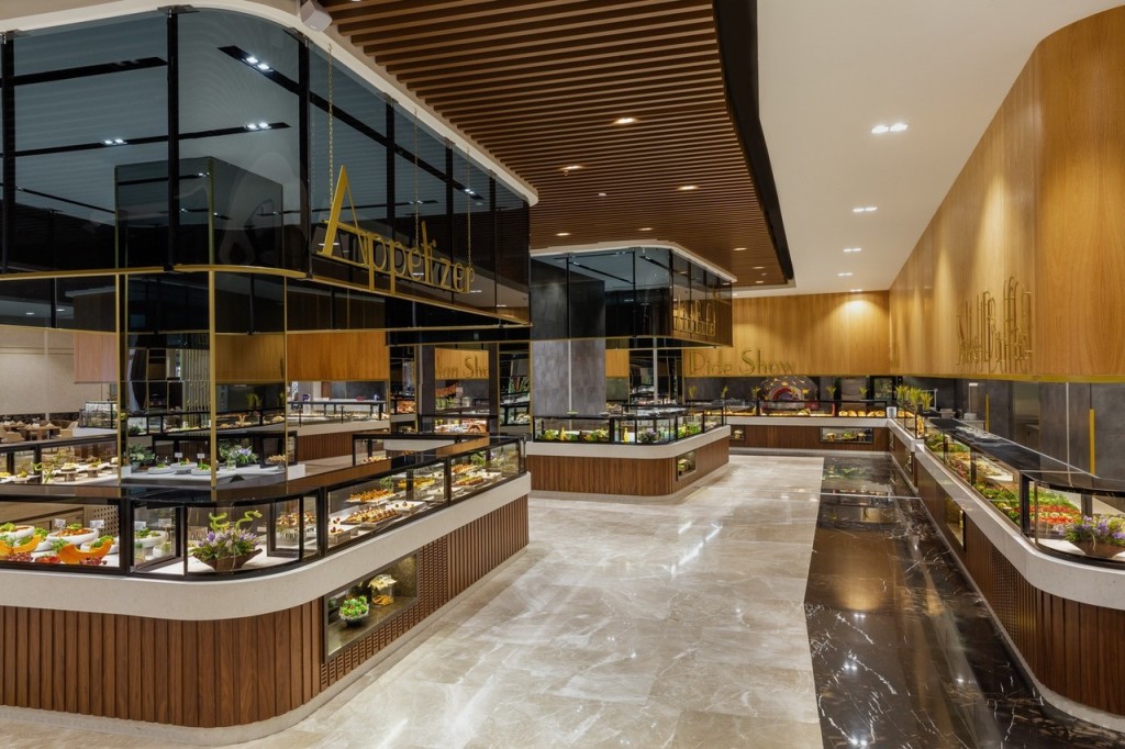 На територията на хотела: Основен ресторант, 4 а-ла-карт ресторанта (с предварителна резервацияи такса от 10 евро, мексикански, италиански, рибен и турски), 6 бара, открит и закрит басейн за възрастни, 3 водни пързалки, СПА център, турска баня, сауна, фитнес, джакузи, тенис на маса, тенис корт, баскетбол, дартс, анимация, мини-клуб, дискотека, конферентни зали.