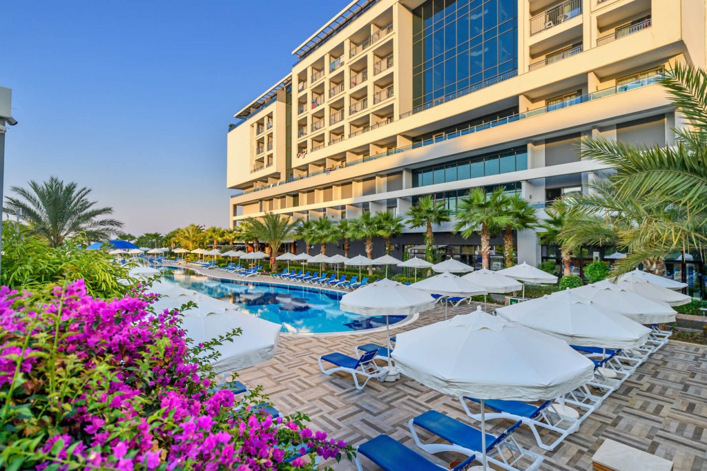 В допълнение към басейните, хотелът разполага с получастен пясъчен плаж с награда „Син флаг“, предлагащ достъп до кристално чисто море. За по-ексклузивно преживяване, в района на залива са на разположение VIP салони, осигуряващи пълно уединение и релаксация.