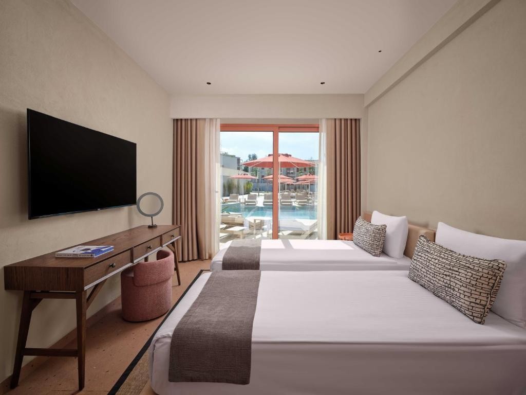 В стаите: Разполага с общо 529 стаи, разположени в основна сграда и 24 блока. Всички стаи са оборудвани с климатик, телевизор, телефон, баня с душ, сешоар, минибар (безплатнo, зарежда се ежедневно с вода, безалкохолни напитки и бира), сет за чай/кафе, сейф (безплатно), балкон.