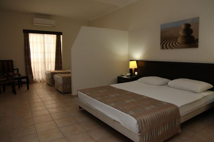 Стаи в основната сграда: 157 стандартни стаи Hotel Standard Rooms (изглед басейн, градина или планина - 25 м2.), 38 фамилни стаи Hotel Family Rooms (изглед басейн, градина или планина – 30 м2.), 312 стандартни клубни стаи Club Standard Rooms (изглед градина, разположени на втора линия през мост, на около 500 м. от плажа – 20 м2.), 48 клубни фамилни стаи Club Family Rooms (изглед градина, разположени на втора линия през мост, на около 500 м. от плажа – 31 м2.).