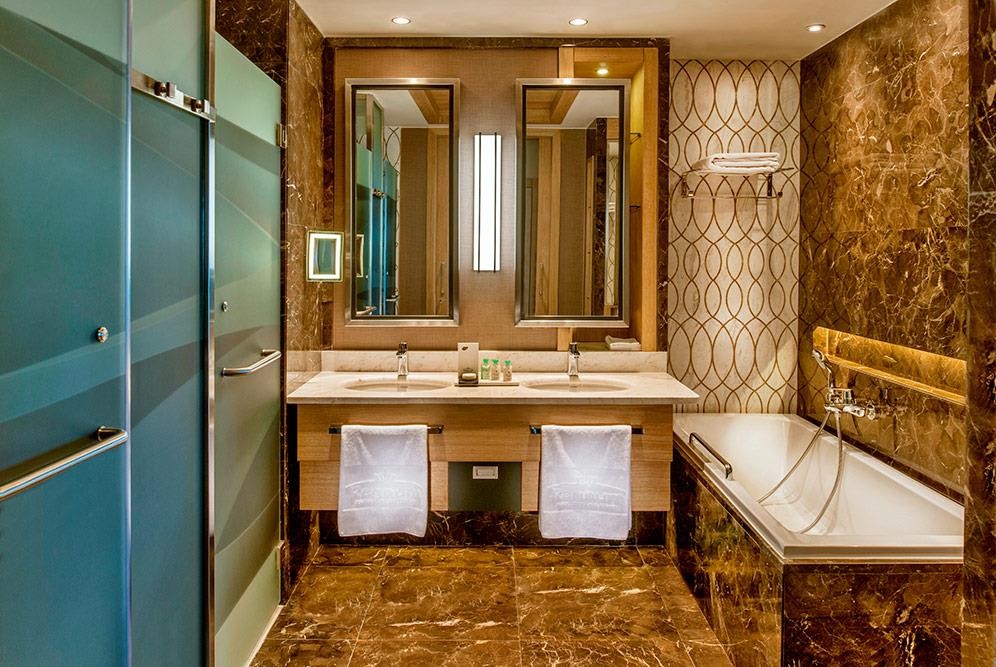 В стаите: Климатик, телевизор, телефон, мини-бар (безалкохолни напитки и бира – зареждане всеки ден, безплатно), сейф електрическа кана, набор за приготвяне на чай/кафе, ютия и дъска за гладене, вана и душ, сешоар, плажна чанта, чехли, 5 вида възглавница, балкон /тераса, почистване на стаята – всеки ден, смяна на спалното бельо – всеки ден, смяна на кърпите – всеки ден, интернет, room service: денонощно (платено)