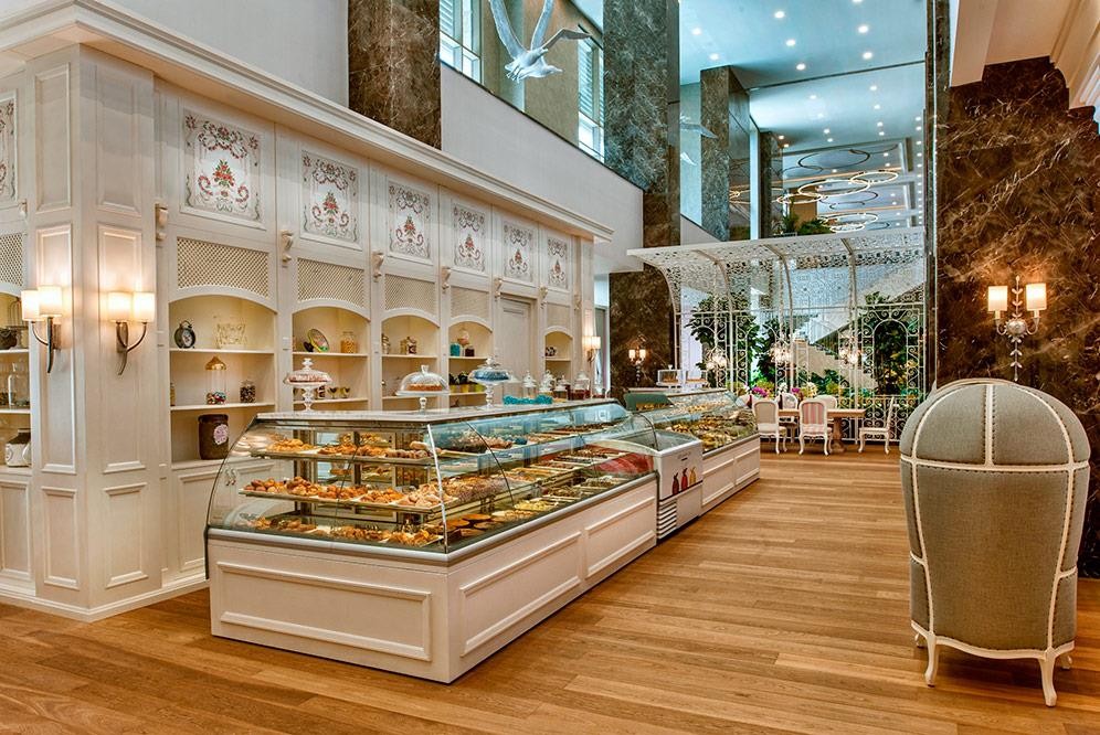 На територията: 2 ресторанта (единия от тях е за гости над 15 год.),диетично меню, 4 ресторанта a-la-carte (турски, италиански, далекоизточен, рибен, с предварителна резервация, резервацията се заплаща), 9 бара ,5 басейна (1 басейн за сърфинг), закрит басейн, 7 водни пързалки, Кинотеатър, лекарски кабинет, SPA център, фризьорски салон, магазини, химическо чистене, обмяна на валута, наем на автомобили, паркинг, конферентни зали (за 280-2100 чов.), Wi-Fi безплатно
