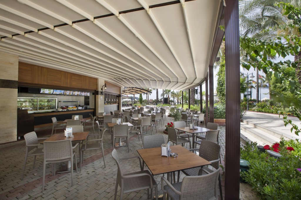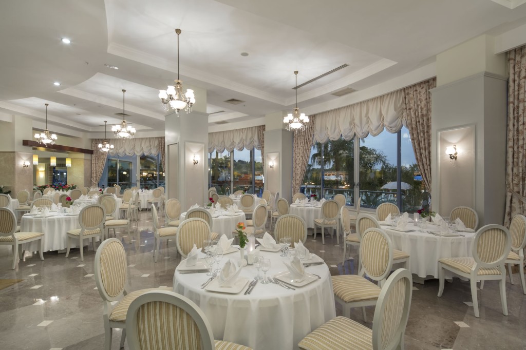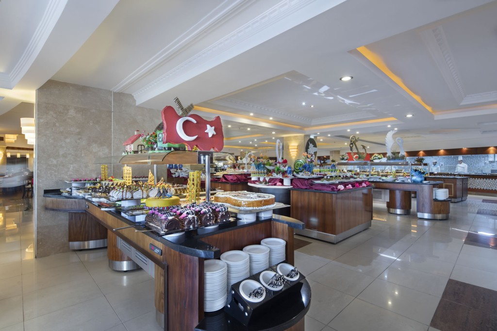 На територията на хотела: Основен ресторант (безглутенова закуска, диетичен, вегетариански и безглутенов бюфет за обяд и вечеря), 3 а ла карт ресторанта (турски, рибен и италиански - едно посещение на седмица е безплатно, предварителна резервация, от 15.05 до 30.09), 5 бара, дискотека, 2 открити басейна, закрит басейн, 3 водни пързалки, Спа център, лекарски кабинет, фризьорски салон, 3 конферентни зали, магазини.
