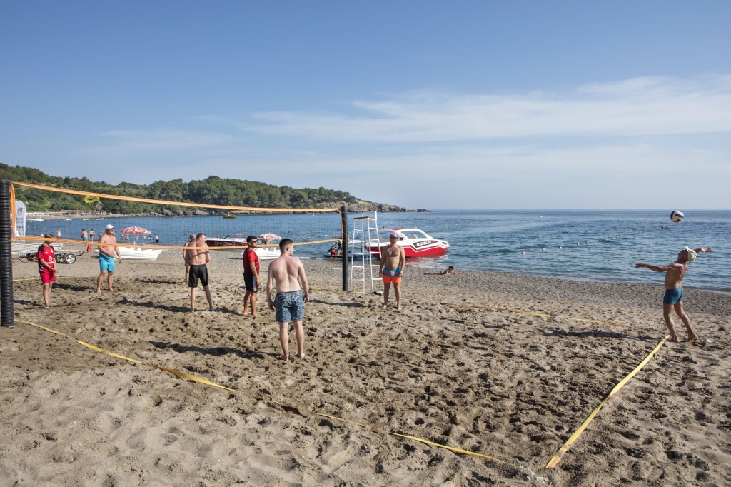 Плаж: Пясъчно-чакълест, непосредствено пред хотела. Плажни чадъри, матраци и шезлонги – безплатно. Бар на плажа.