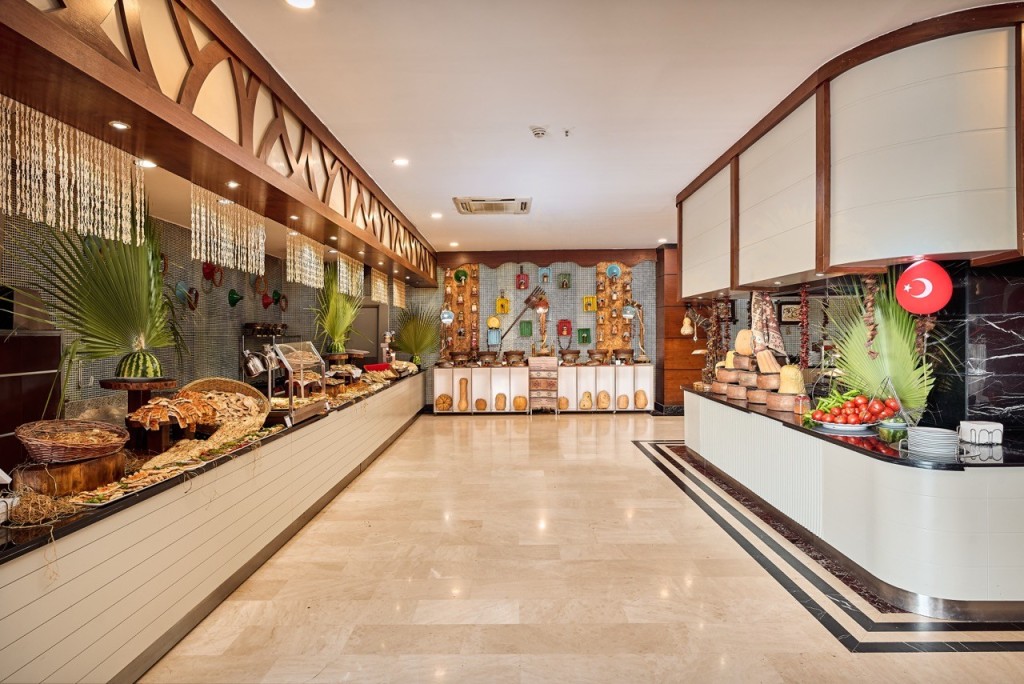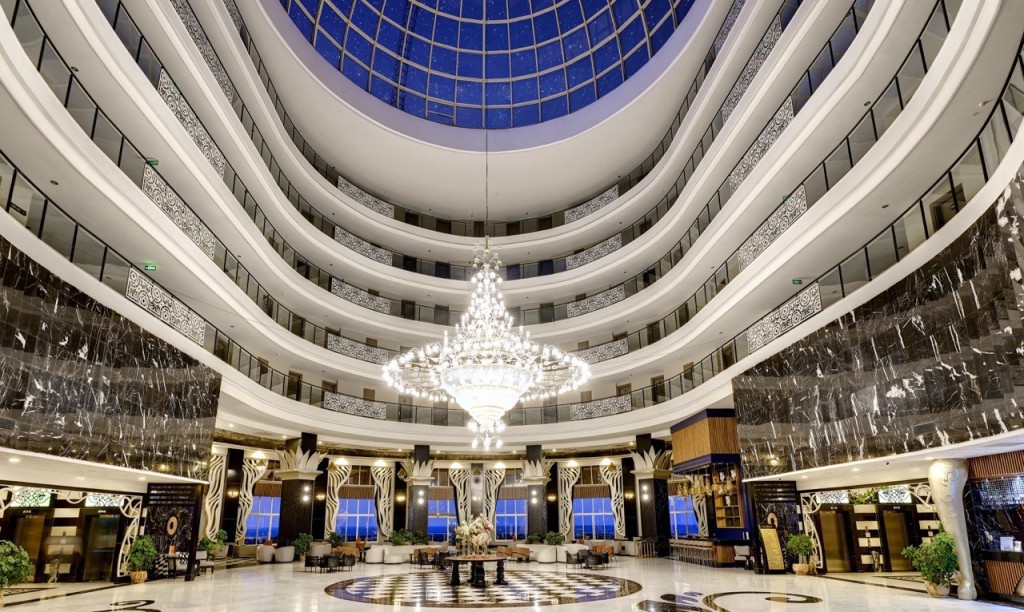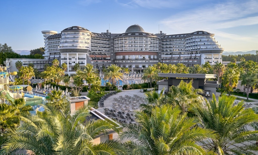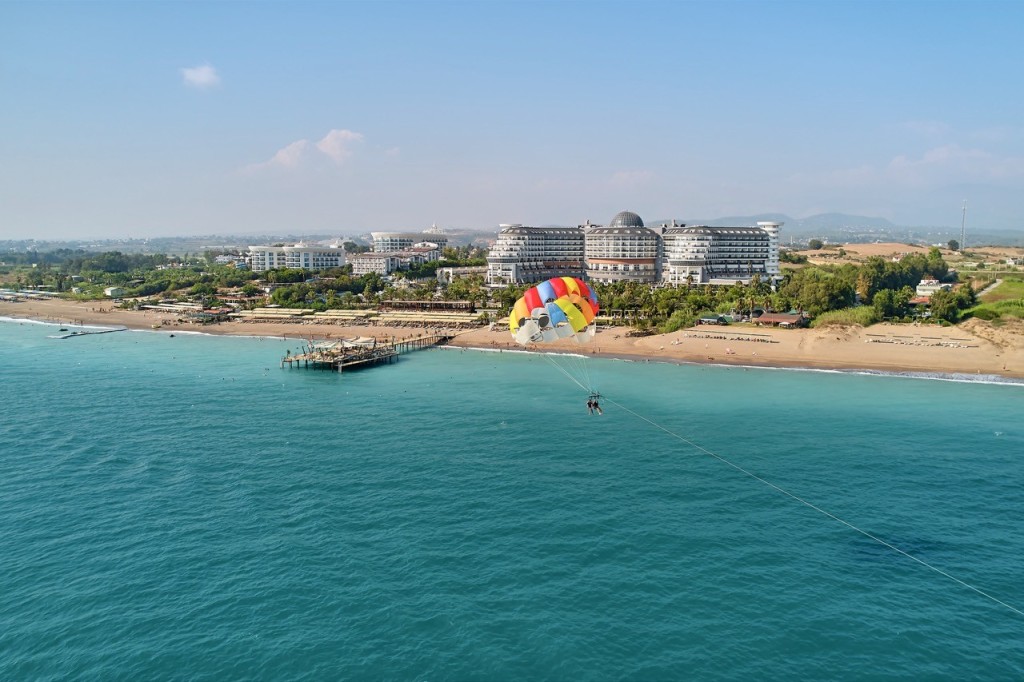 На територията на хотела: СПА, вътрешен и външен басейн, турска баня,фитнес център. 6 а ла карт ресторанта- за турска и интернационална кухня, Cabanas за мексиканска храна, Mr. Fish, Lavanline за изискана италианска кухня, азиатски ресторант Far East,  Арт ресторант- за междинни хранения и леки следобедни закуски, Turca, бюфет-ресторант Атлантис, сладкарница. 6 бара и дискотека,  Moonlight Bar- сервира питиета 24/7.
