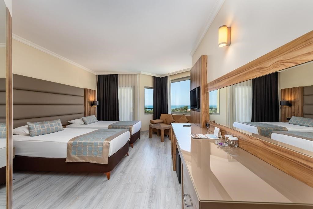 В стаите: Хотелът се състои от основната 7-етажна основна сграда, триетажния Еко клуб и двадесет и три триетажни блока на езеровите къщи. Разполага с 1030 стаи, които са оборудвани с централен климатик (работи в определени часове, в зависимост от сезона), телевизор, телефон, баня с душ, сешоар, мини-бар безплатно (вода, безалкохолни напитки - ежедневно зареждане), сейф (безплатно), балкон или тераса, под - ламинат (Main Building); теракот (Lake Houses); теракот или ламинат (Club Building), Wi-Fi (безплатно). Почистване на стаите - ежедневно, смяна на спално бельо - 3 пъти седмично.