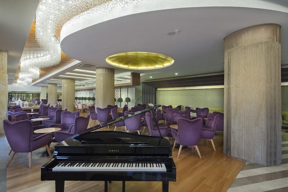 Хотелът разполага с 3 открити плувни басейна, вътрешен басейн, 5 а-ла-карт ресторанта(османска, средиземноморска, френска, мексиканска и европейска кухня), 5 бара, дискотека, сладкарница, СПА център, турска баня, сауна, масажи, анимация, плажен волейбол, йога, боулинг, билярд, тенис на маса, дартс, водни спортове, WI-FI. За децата: детски басейн, детски водни пързалки.