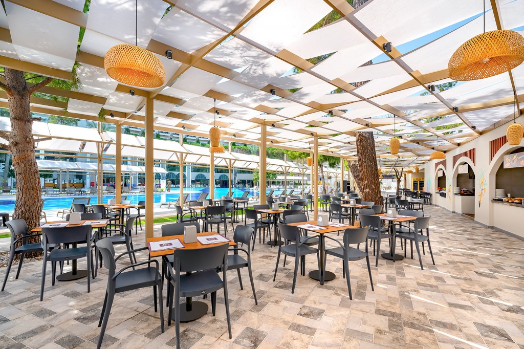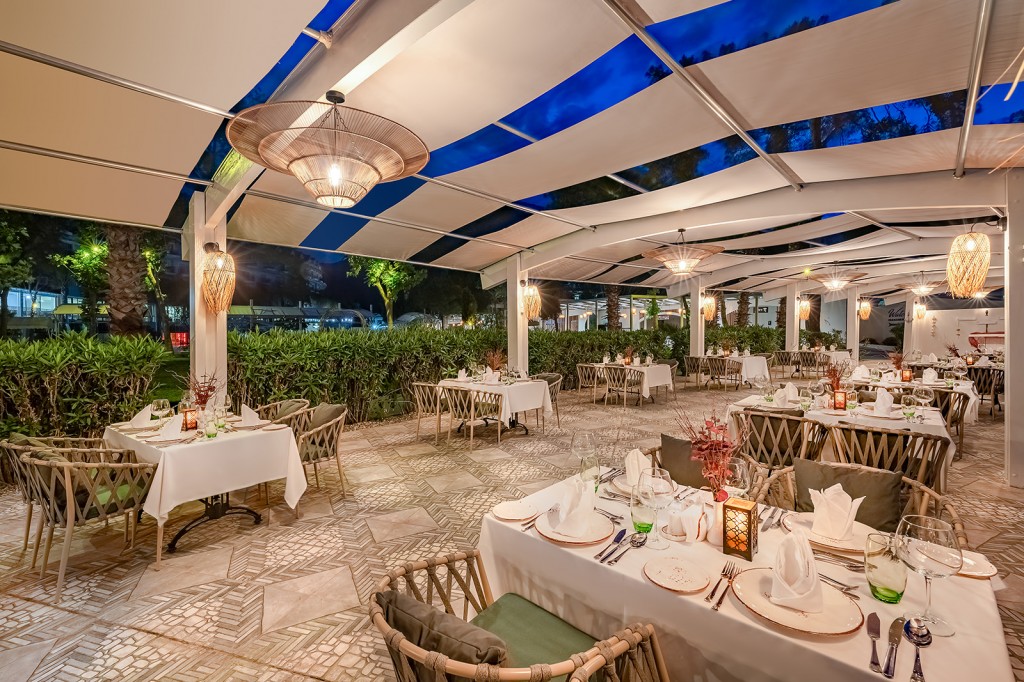 Основен ресторант, 6 а - ла - карт ресторантa (с предварителна резервация), 8 бара, 2 открити и 1 закрит басейна, 3 водни пързалки, магазини, СПА център, дискотека, кино, конферентни зали, паркинг. За децата: Детска площадка, мини клуб (4-12 г.), 2 детски басейна – външен и вътрешен, водни пързалки, анимация. Безплатни услуги: Турска баня, сауна, джакузи, фитнес, дартс, тенис на маса, тенис корт (с предварителна резервация), баскетбол, аеробика, водна гимнастика, кино, жива музика, анимация, интернет. Платени услуги: Масаж, фризьор, търговски център, билярд, джаги, интернет кафе (с предварителна резервация), видеоигри, химическо чистене, лекар, водни спортове, наем на топки и ракети за тенис, осветление за тенис корта.