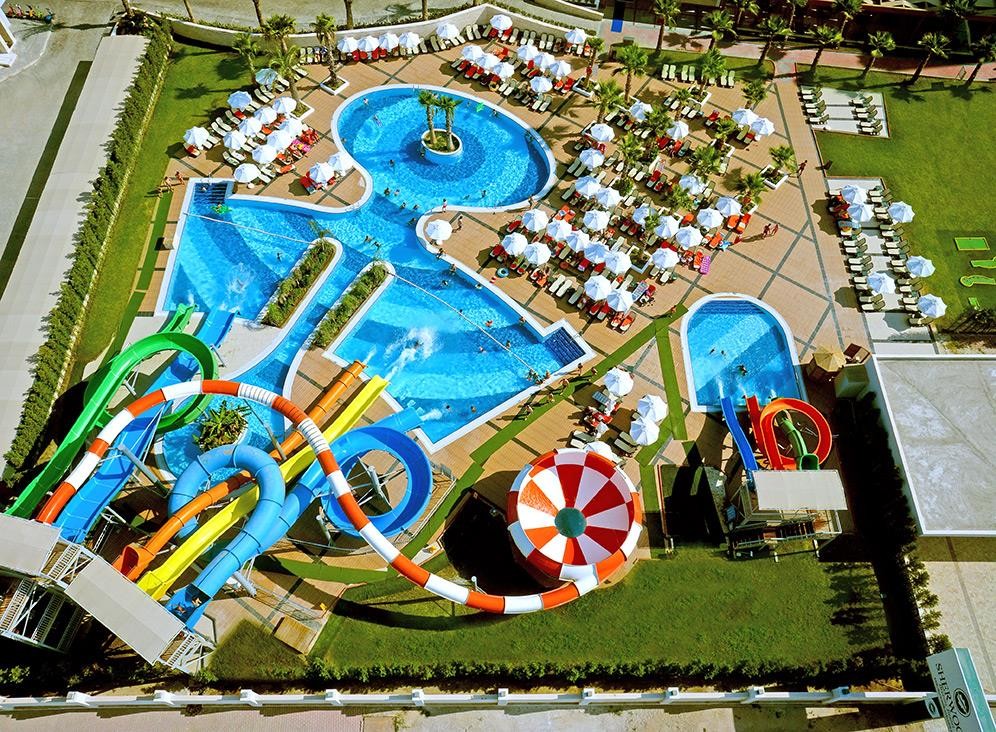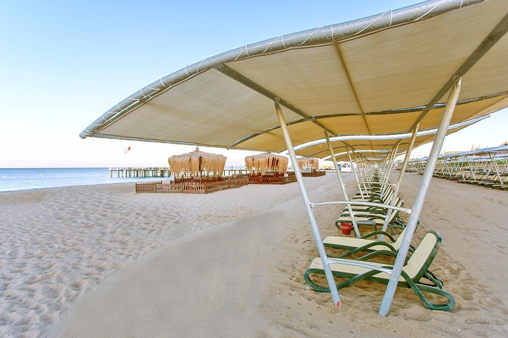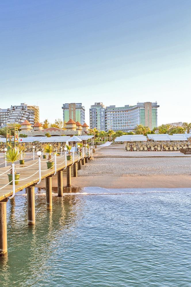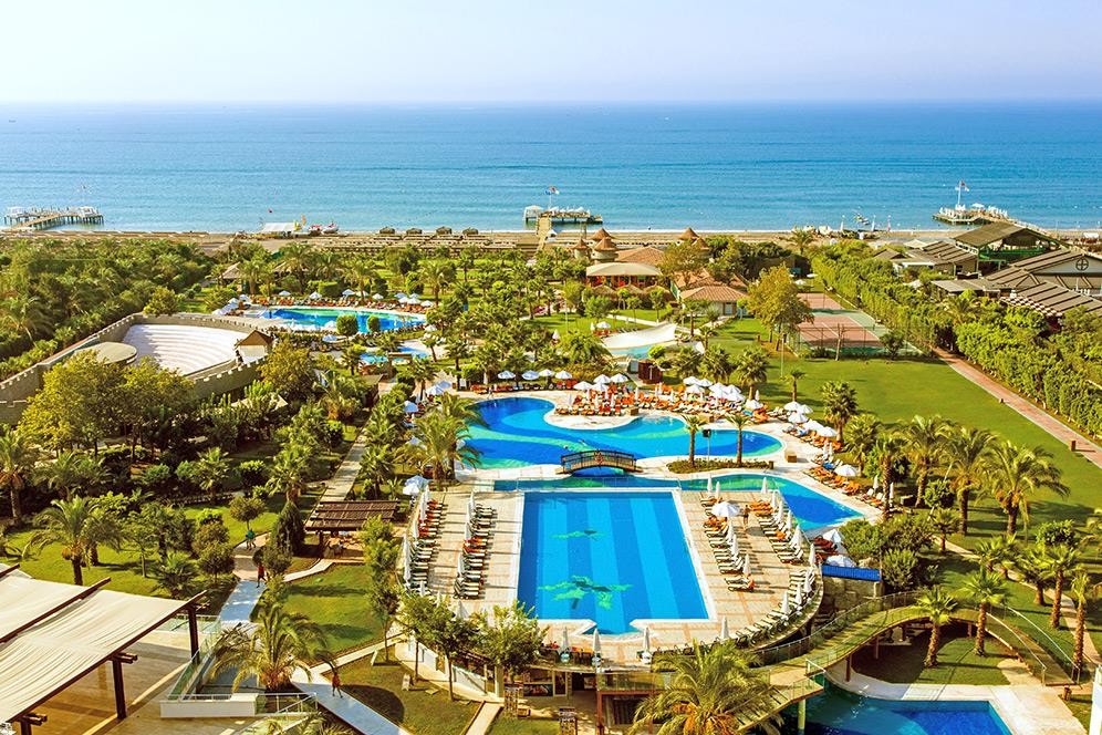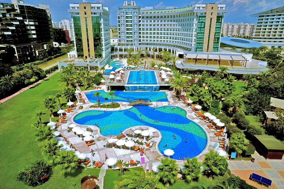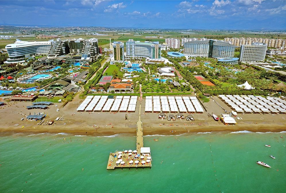 Разположение: Хотелът се намира на брега на морето, в района на Лара, на 12 км от центъра и 10 км от летището на Анталия. Построен е през 2005 г. и е последно реновиран 2019-2020 г. с обща площ от 33 000 кв.м.