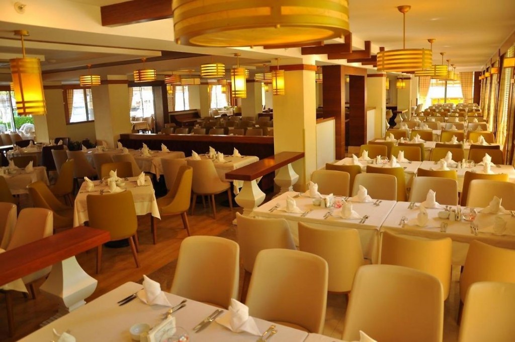 На територията на хотела: Един основен ресторант с капацитет за 400 човека, 3 а ла карт ресторанта – Турски, Рибен и Италиански (веднъж безплатно използване на един за седмичен престой, с предварителна резервация), 4 бара, един основен външен басейн, детски басейн, Релакс басейн ( с подгряване през зимния сезон).
