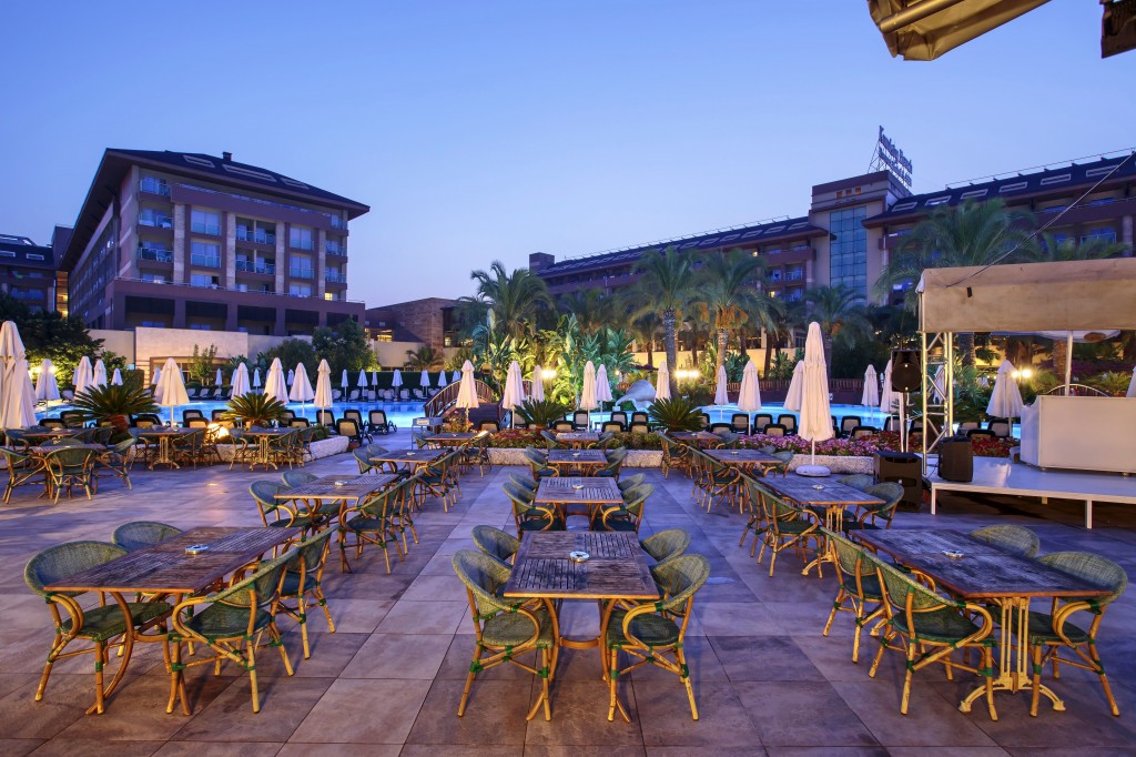 На територията на хотела: 5 ресторанта, 6 а-ла-карт ресторанта (турски, барбекю, рибен, италиански, мексикански, азиатски - с предварителна резервация), 8 бара, сладкарница, дискотека, кино, тенис корт, зала за игри, 3 открити басейна, един от които с 4 пързалки за възрастни, и 1 закрит басейн (с подгряване през зимния сезон), СПА център, фитнес зала, 3 конферентни зали, паркинг.