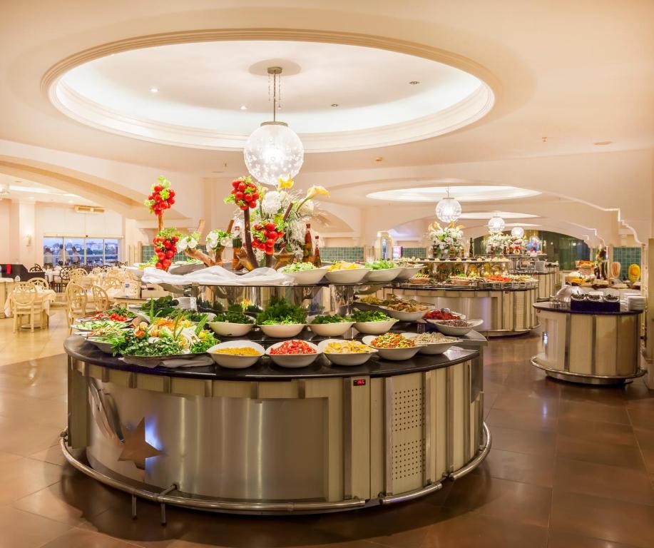 На територията на хотела: Основен ресторант, 12 ресторанта a la carte (турски ресторант - с резервация, за гостите с престой мин. 7 нощувки, 1 безплатно посещение за целия престой; монголски, рибен, барбекю, средиземноморски, френски, италиански, индийски, мексикански, руски, далекоизточен, японски - с предварително записване, платено), 5 бара, дискотека, 3 открити басейна, закрит басейн, Аквапарк (5 пързалки за възрастни и 6 за деца), Спа център, кинозала, 2 конферентни зали, магазини, лекарски кабинет, фризьорски салон, химическо чистене, пералня.
