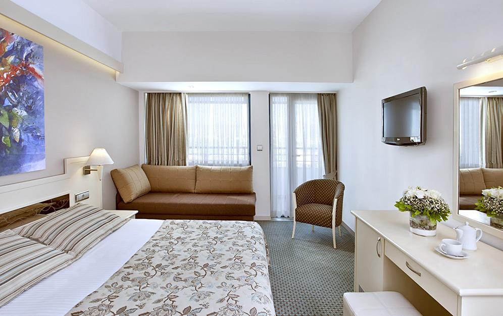 Всички стаи разполагат с централен климатик, телевизор, телефон, чехли, сейф (безплатно), баня с вана (в корпус Club)/душ (в Main Building), сешоар, сет за кафе и чай, мини бар (бира, безалкохолни напитки - сок, кола, фанта, минерална вода; зарежда се ежедневно), балкон, под - мокет (в Main Building); ламинат (в корпус Club), WI-FI (безплатно, с ограничено ползване). Почистване на стаите - всеки ден, смяна на бельото - 3 пъти седмично.