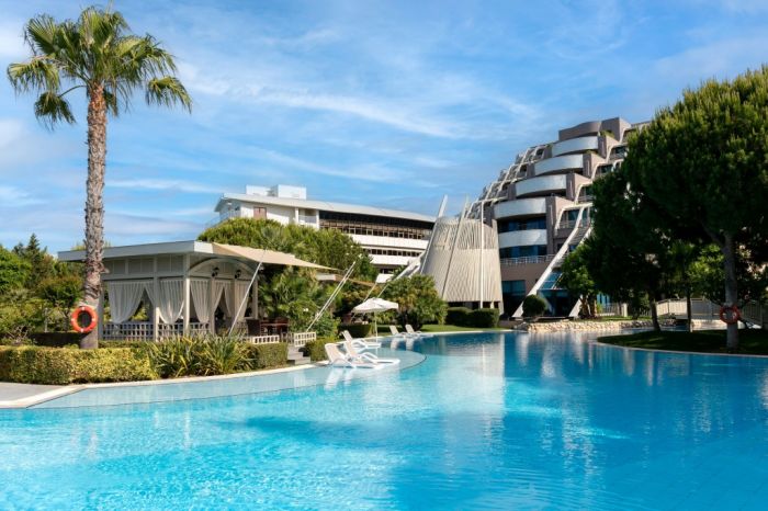 В стаите: Състои се от една основна 5 етажна сграда, към която има още пет 4-етажни сгради "Теrrace", шест 2-етажни блока "Lake" и отделно разположени VIP Villas. Хотелът разполага с общо 554 стаи оборудвани с централен климатик, телевизор, телефон, баня с душ или вана, сешоар, чехли и халати, сет за кафе и чай, мини-бар безплатно (разхладителни напитки, бира, чипс - ежедневно), сейф (безплатно), балкон, WI-FI (безплатно), под - паркет (или мокет). Почистване на стаите - ежедневно, смяна на спално бельо - 3 пъти седмично.