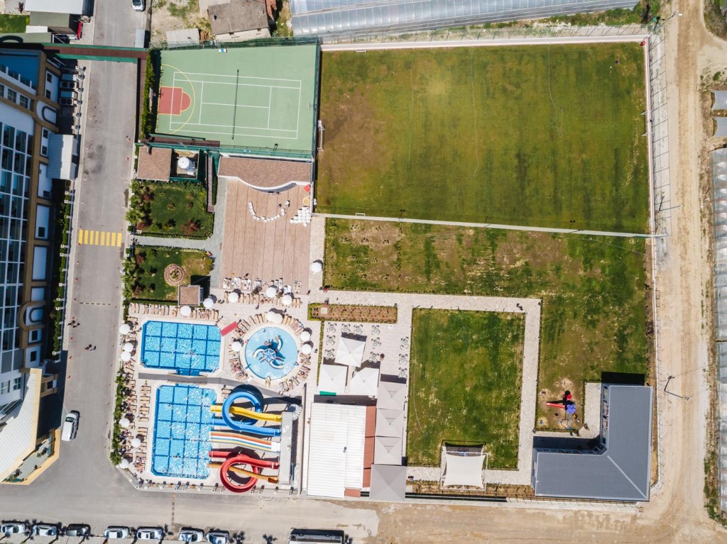 За децата: детски бюфет, детска площадка, мини клуб, детска анимация, мини дискотека, два детски басейна, детски водни пързалки.