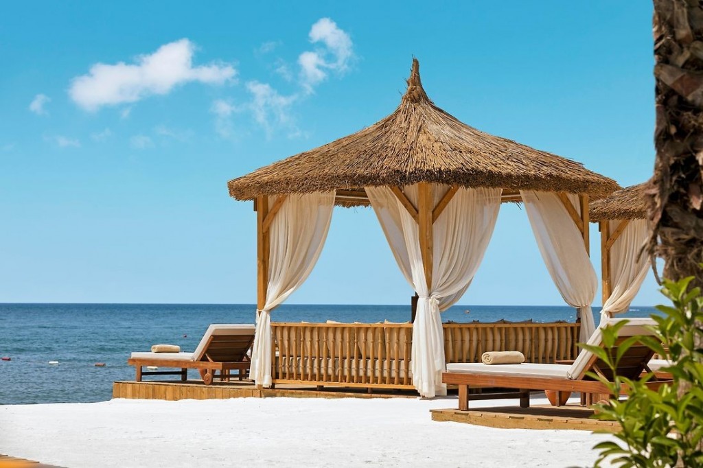 Плаж: Собствен, пясъчен плаж. Бар на плажа: безплатно. На басейна и на плажа: чадъри, шезлонги, матраци - безплатно. Плажни кърпи - безплатно.