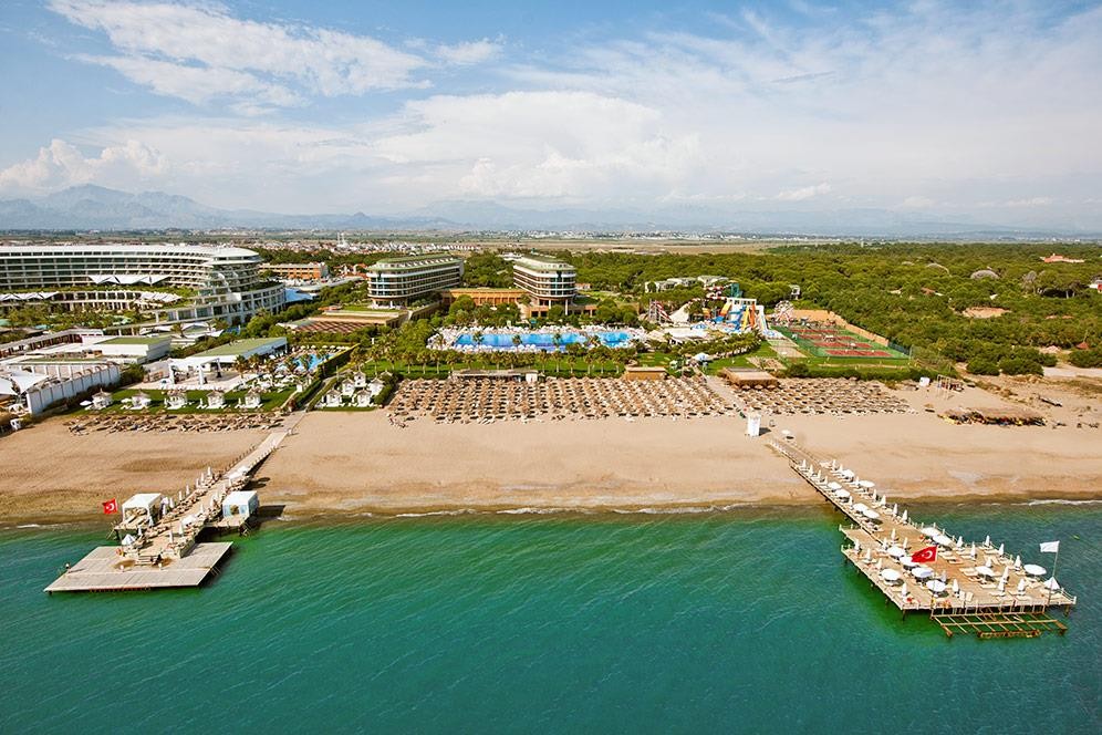 Разположение: Хотелът е разположен на 35 км от летище Анталия, на 2 км от селището Белек, на брега на морето. Построен е през 2007 г. върху територия с обща площ от 93 500 м2, последно реновиран през 2018-2019 г. през зимния период.