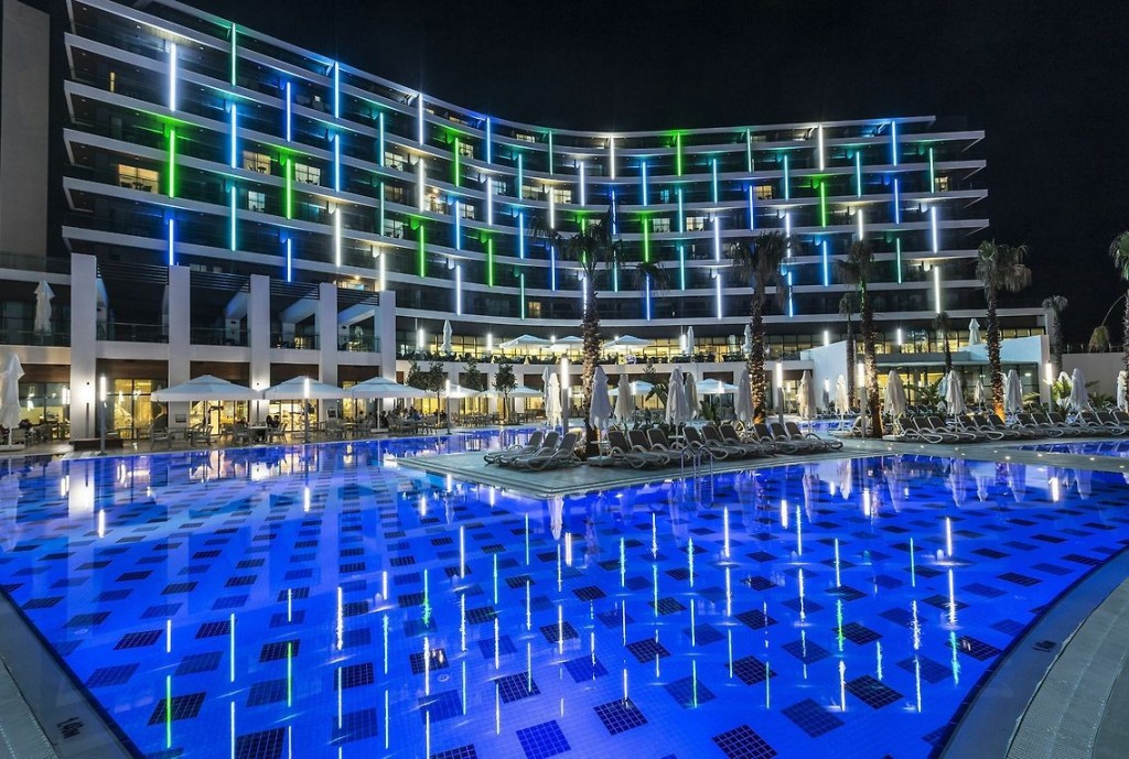 Основен бюфет ресторант, 3 a лa карт ресторанта (турски, италиански, рибен - срещу заплащане), сладкарница, 5 бара, 2 открити и 1 закрит басейн, 5 водни пързалки, дискотека, 2 конферентни зали, паркинг.