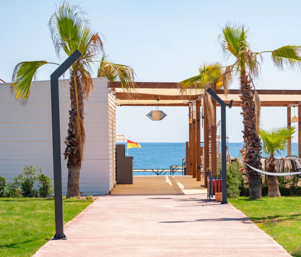 Плаж: Собствен пясъчно-чакълест плаж на около 650 м от хотела, с безплатни чадъри и шезлонги. Бар на плажа.