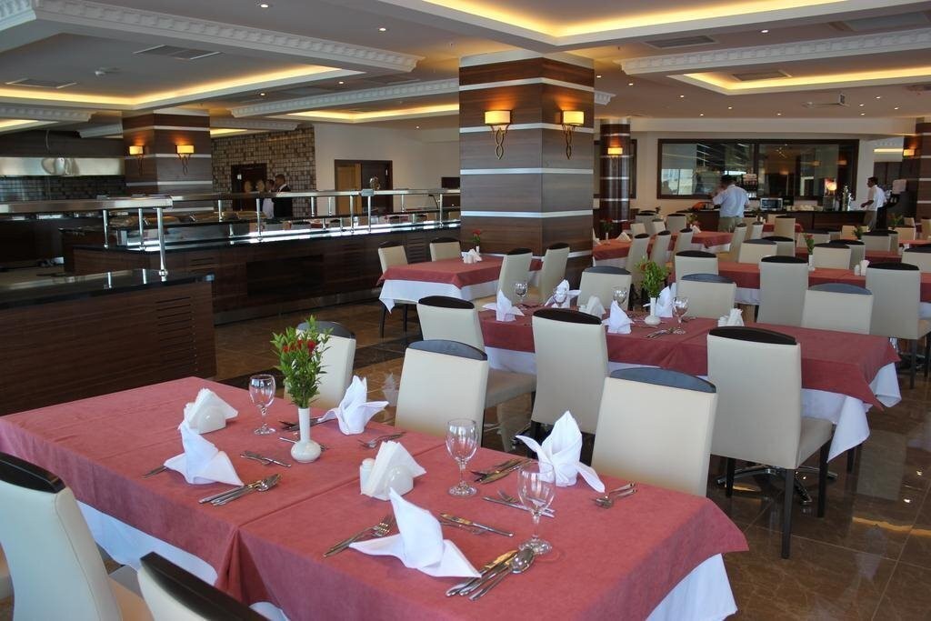 Курортен хотел, разположен в Алания, една от най-атрактивните части на средиземноморското крайбрежие. Състои се от една основна 13-етажна сграда. Разстоянието до центъра и крайбрежната алея на Алания, където оживеният нощен живот е в разгара си и има много отлични възможности за любителите на пазаруването, е на 10 минути с кола. А планинската река Дим, известна със своята атмосфера на спокойствие и тишина и живописна околност, е на 15 минути с кола. На разположение на гостите са частният плаж на хотела, който е удобно достъпен чрез подземен проход, открити басейни с водни пързалки, няколко а-ла-карт ресторанта с а-ла-карт обслужване, барове и сладкарница с вкусно кафе и сладки изкушения. За най-малките гости на курорта има мини-клуб, където работи опитен и професионален екип от аниматори и се провеждат специални събития, които не позволяват на малките гости да скучаят. Има също басейн и детска площадка. Другите удобства включват фитнес зала и спа център със сауна, турска баня и парна баня. Любителите на активното забавление винаги ще намерят какво да заемат, тъй като хотелът предлага широка гама от спортни развлечения. Спортни и развлекателни събития за възрастни и деца се провеждат всеки ден през деня, а вечер има изпълнения на професионални артисти и танцьори, музикални и акробатични шоута. Хотелът е подходящ за семейства и семейства с деца.