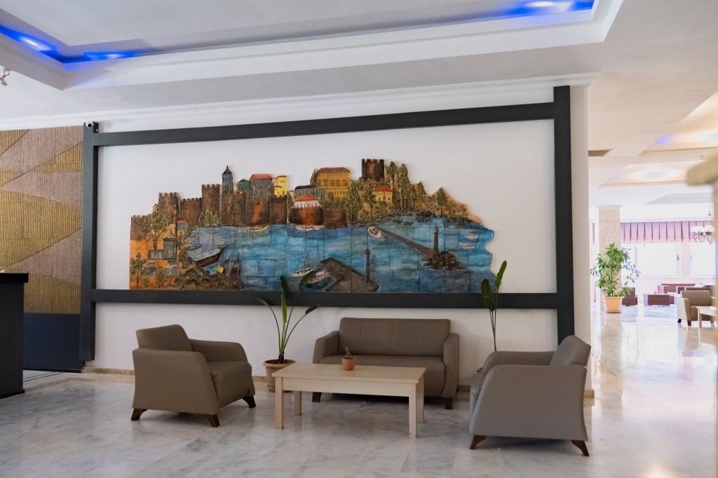 В стаите: Състои се от една основна 5-етажна сграда и шест 4-етажни блока и общо 203 стаи. Всички стаи са оборудвани с балкон, климатик, телевизор, телефон, баня с душ/вана, сешоар, мини бар (презарежда се с минарелна вода), сейф (срещу заплащане), под – лаимиран паркет.