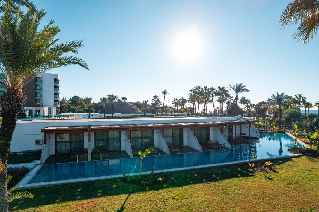 В стаите: Има една основна сграда на 4 етажа и разполага с 283 стаи - 164 стандартни стаи и 19 swim up стаи. 65 % са с гледка море. Стаите са оборудвани с индивидуален климатик, телевизор, телефон, баня с душ, сешоар, минибар (софт напитки и бира - безплатно, зарежда се всеки ден), сейф (платено), балкон, Wi-Fi безплатно. Почистване на стаите - ежедневно, смяна на спално бельо - 2 пъти седмично.