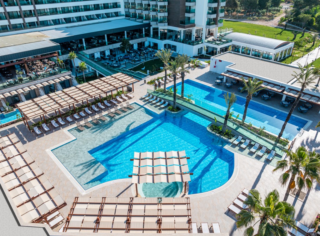 Разположение: Хотелът е изцяло реновиран и модернизиран през 2023 г.! Разположен на 55 км от летището на гр. Анталия, на 9 км от гр. Сиде, на 2 км от селището Чолаклъ, на брега на морето. Построен е през 1994 г. с обща площ от 50 000 м2.