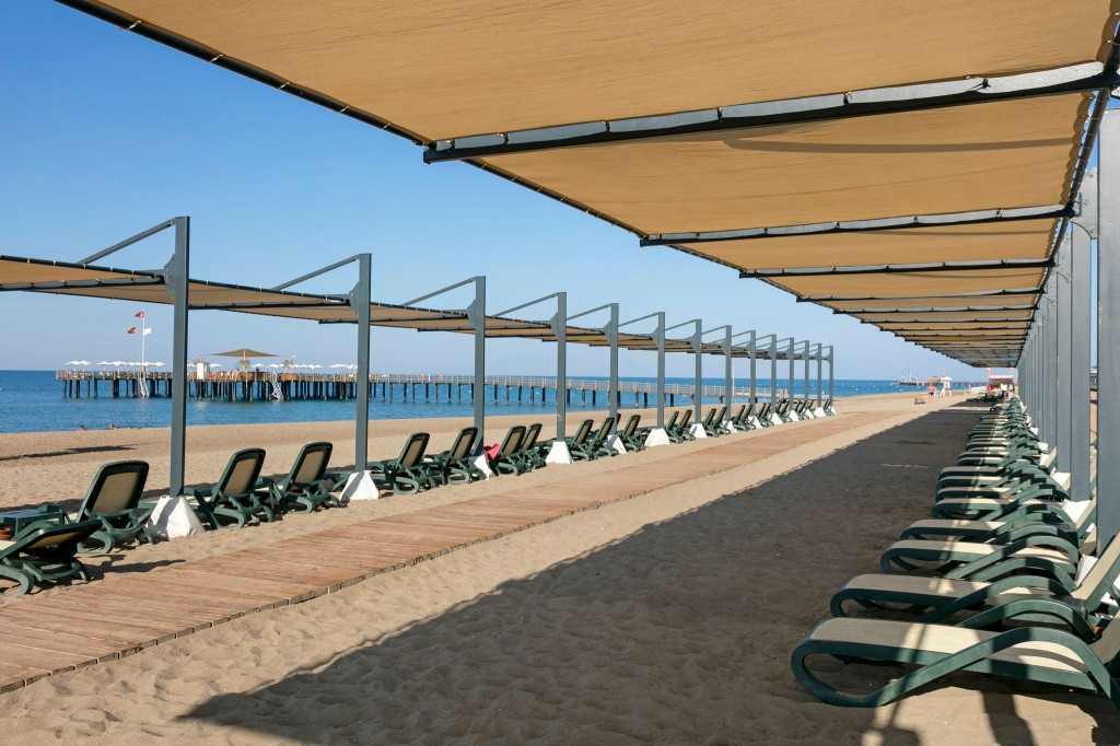 Плаж: Собствен, пясъчен, минава се по мост над река. Чадъри, шезлонги, матраци и плажни кърпи на плажа и при басейна – безплатно.