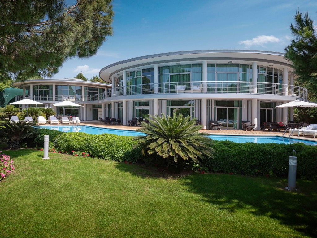 В стаите: Състои се от седем 4-и 5-етажни корпуса и четиринадесет 2-етажни вили и разполага с общо 600 стаи с изглед към градината. Стаите са оборудвани с централна климатизация, мини-бар (безалкохолни напитки, бира, ядки, вафли, чипс - ежедневно зареждане, безплатно), интерактивна телевизия, LCD32 телевизор, сейф (безплатно), телефон с директно избиране, Wi-Fi (безплатно), баня душ и вана, сешоар, дъска за гладене и ютия, халати за баня и чехли, балкон, сет за кафе и чай, ябълки и вино (в деня на пристигане). Почистване на стаите - ежедневно, смяна на спално бельо - ежедневно.
