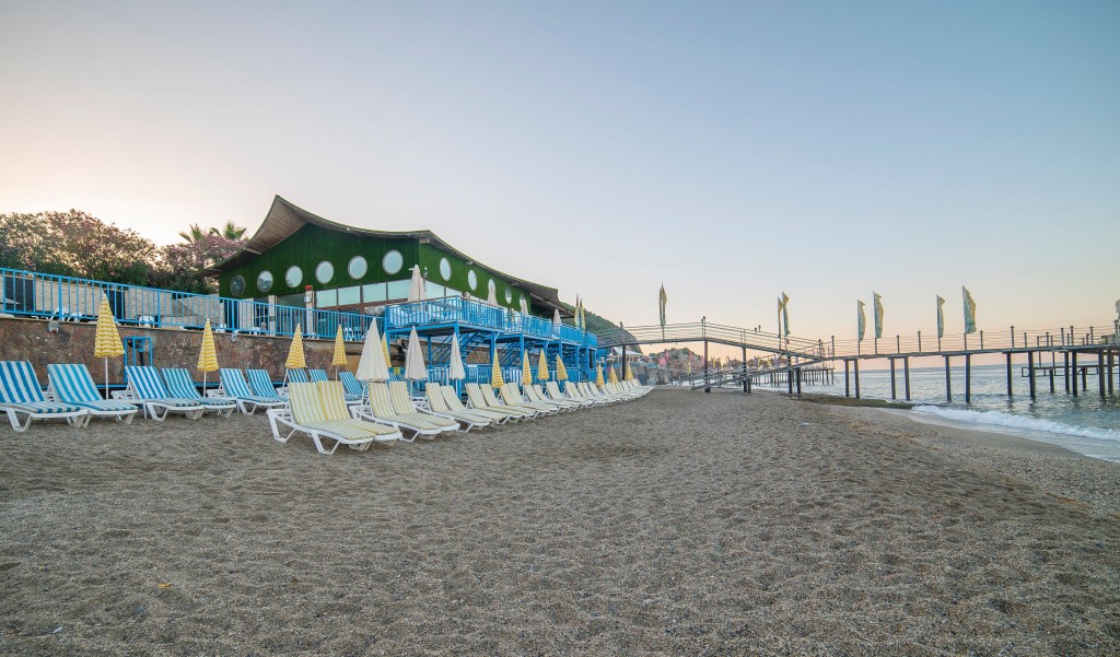 Плаж: собствен пясъчно-чакълест, на разстояние от 100м от хотела през пътя; притежава сертфикат "Син флаг", Чадъри, шезлонги и плажни кърпи на плажа и при басейна – безплатно.