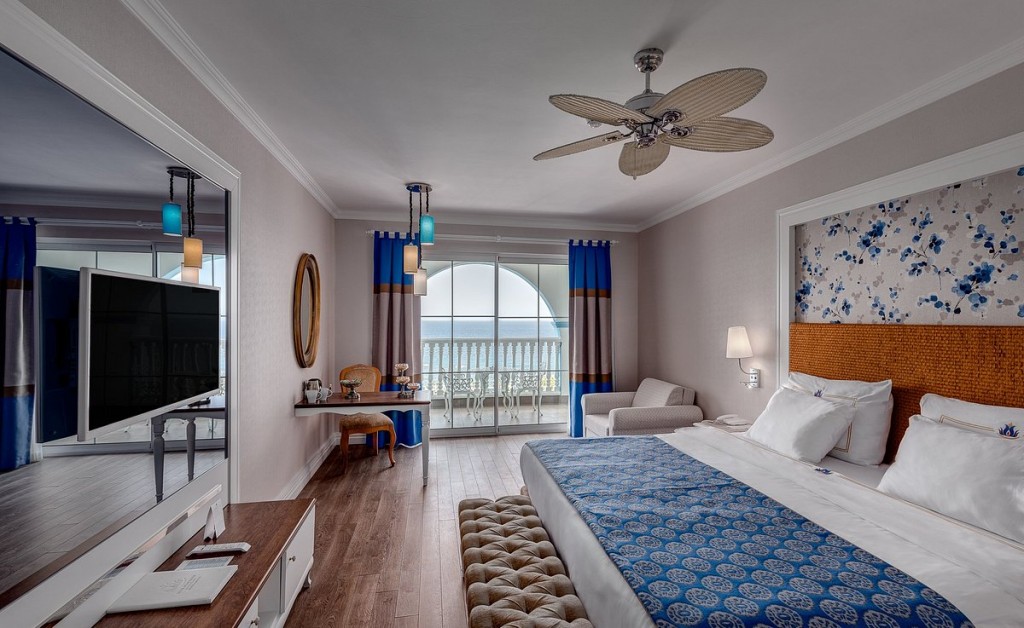 Стаи Main Building: Deluxe room (30 - 32 м2), Deluxe pool room (30 - 32 м2), Superior room (35 м2), Junior Suite room (1 спалня, 1 баня - 40 м2 ) Superior suite room (2 спални, 1 баня - 57 м2), Villa suite room (2 спални, 2 бани ( В деня на пристигане се предоставят плато с плодове и вино) - 62 м2), King suite room (2 спални, 2 бани + външно джакузи, мека бел, чадър и шезлонги (В деня на пристигане се предоставят плато с плодове и вино) – 64 - 80 м2)