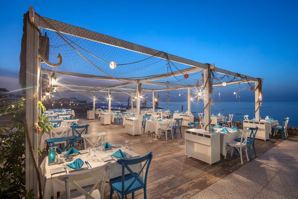 На територията на хотела: Основен ресторант, 3 a la carte ресторанта (турски, италиански, рибен – с предварителна резервация от предходни ден срещу заплащане); нощен бюфет, кафе-сладкарница, 6 бара; 6 басейна – един от които басейн за възрастни с водни пързалки, 2 конферентни зали, 4 тенис корта, СПА център, фитнес зала,