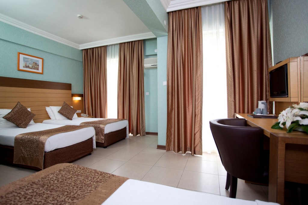 Удобствата в хотела включват открит плувен басейн и традиционна турска баня. Гостите могат да се насладят на релаксиращ масаж или да отпочиват в сауната. Хотелът разполага с фитнес център, зала за игри и безплатен Wi-Fi. Хотелът разполага с фоайе, 24-часова рецепция, интернет зала, WiFi, бар, ресторант, открит плувен басейн, заседателна зала, телевизионна зала, турска баня, парна баня, сауна, масажен салон, фитнес зала, пералня, асансьор, генератор, игрална зала, мини маркет, билярдна зала, футболна маса и лекар. Освен това на плажа Клеопатра ви очакват тенис, баскетбол, волейбол и водни спортове.